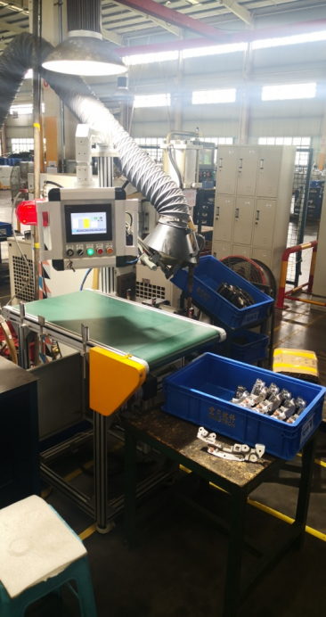 注解:利用焊接电流、焊接时间和焊接数量检测每个产品是否合格。当产品放到输送线上后设备根据检测信息判断良品流入OK品方向,不良品反向流入不良品箱并报警。